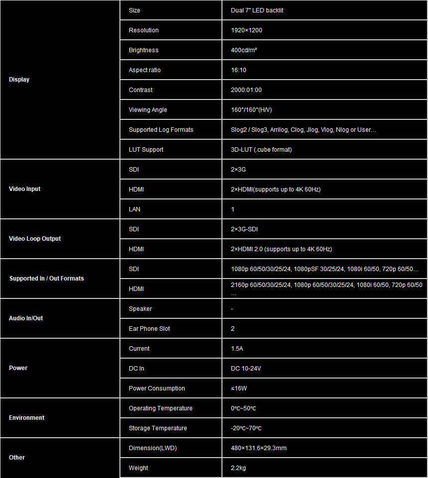 - Input:3G-SDI, HDMI 2.0, LAN
